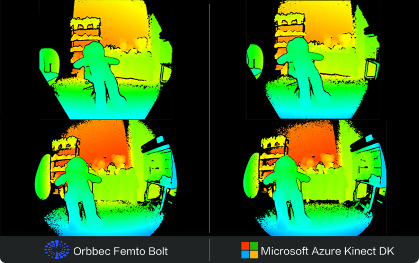 * 实际效果对比图:Femto Bolt(左)VS Azure Kinect DK (右)