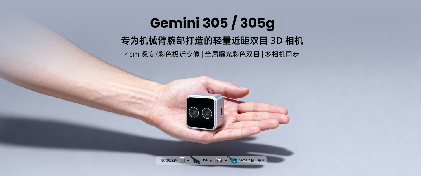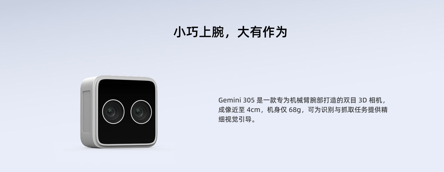 Gemini 305_专为机械臂腕部打造_轻量近距双目3D相机_耀世注册官网